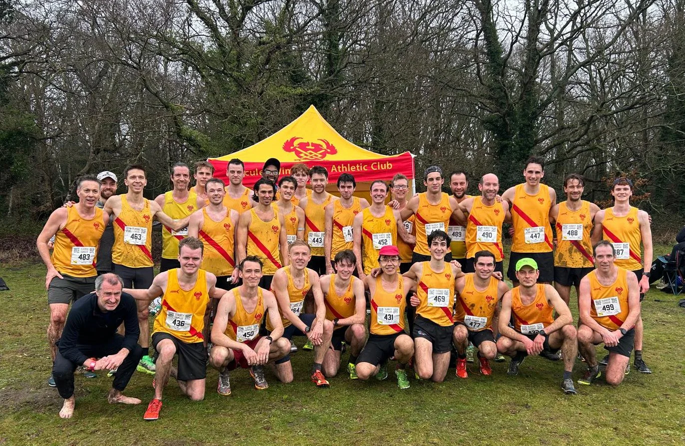 On 7 February the Club, supported by Belgrave Harriers, staged the final match of the Surrey Cross Country League on a rainy, muddy, puddly Wimbledon Common, at the end of which the Senior Men’s trophy, which has been in the Club's possession for five of the last seven seasons, was handed over gracefully to Belgrave, their first Men's League title since 2002 – albeit with a vow to get it back again next season!